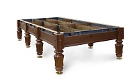 В конструкции стола используется уникальная разработка Фабрики - усиленная металлическая рама. В условиях интенсивной эксплуатации, что характерно, например, для бильярдных клубов, такая модель прослужит длительное время, сохранив стабильность и отличные игровые свойства. Обратите внимание на то, что рама настолько удачно интегрирована в деревянный каркас, что ничего не выдает ее присутствия. Вы можете пользоваться преимуществами непревзойденной устойчивости металлической рамы и наслаждаться дизайном классического бильярдного стола одновременно.